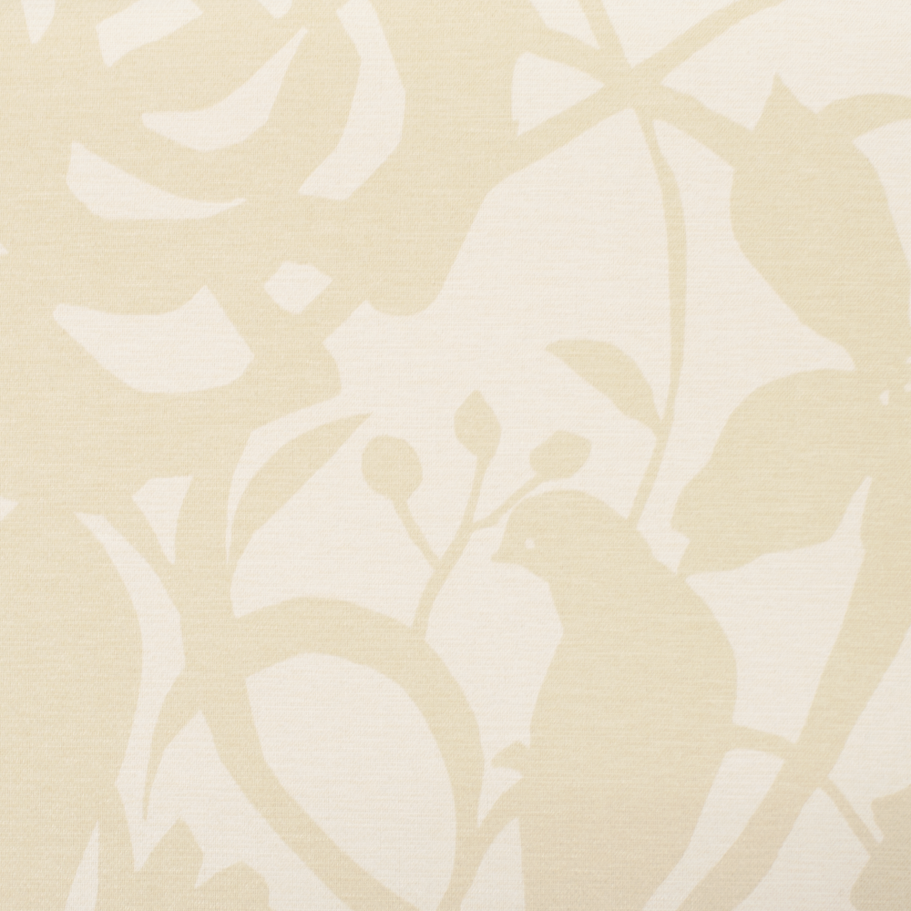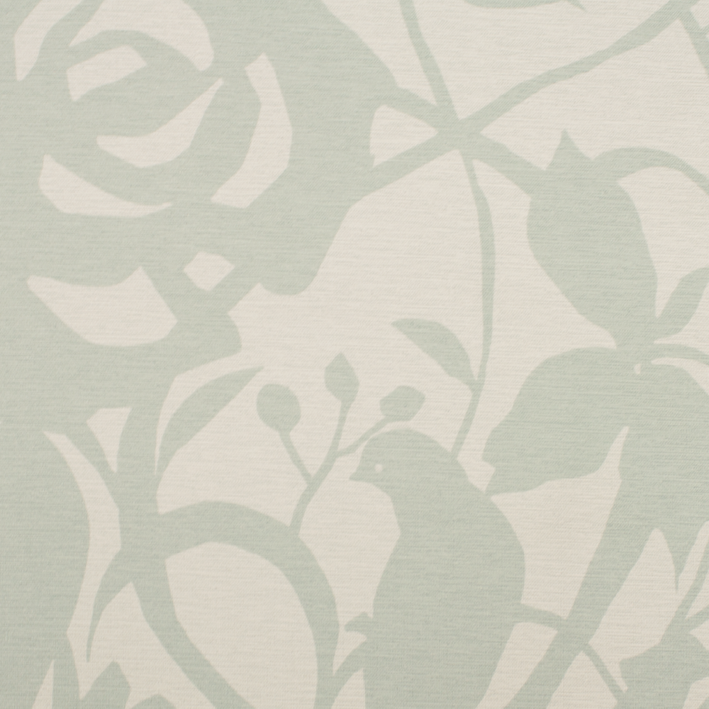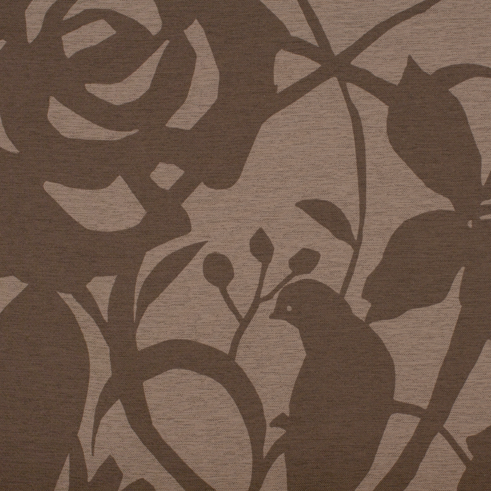 防炎機能付きのプリント遮光生地。 鳥や植物がシルエットで描かれたモダンなデザインです。